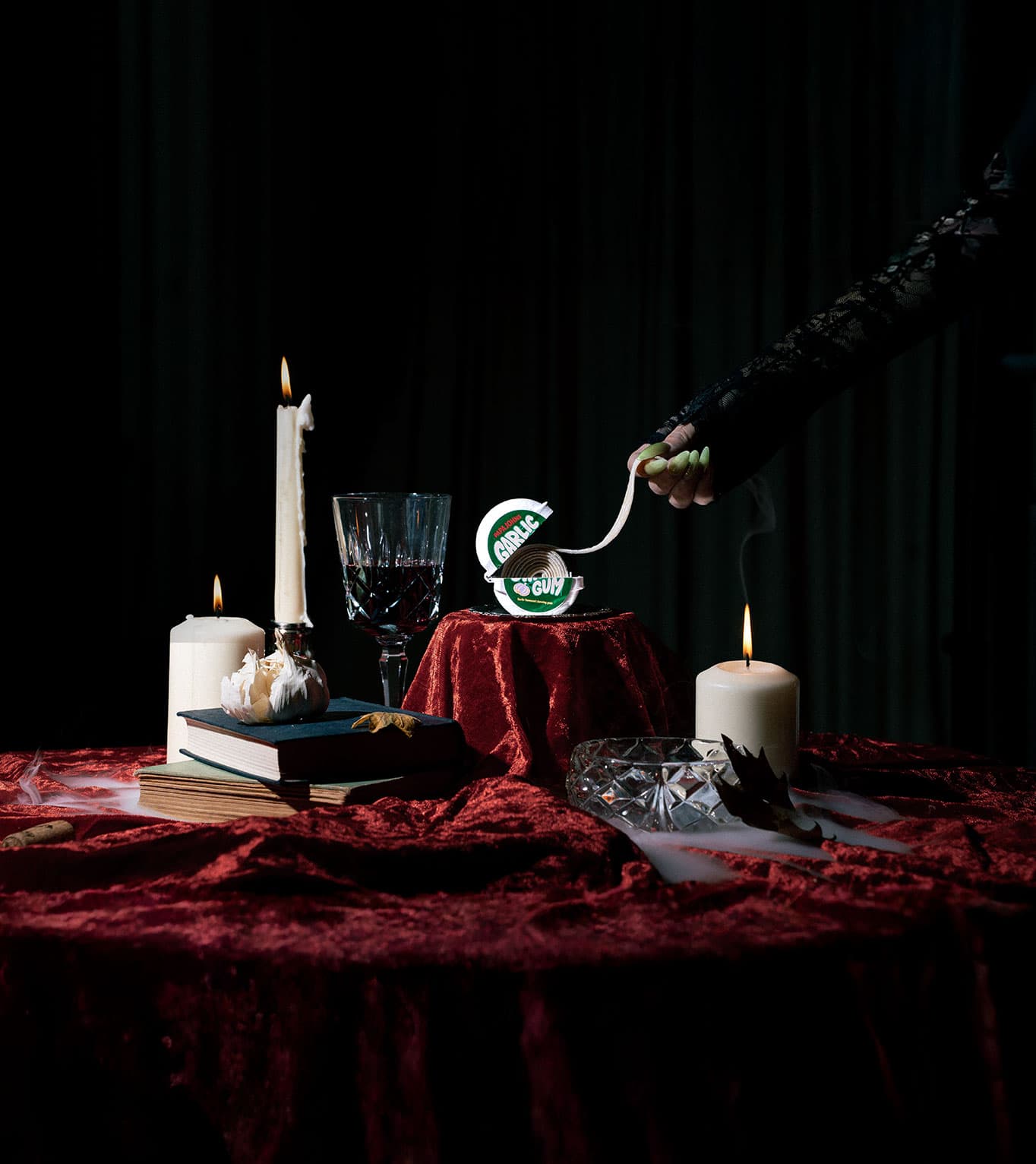 Unwrap, chew, and let the garlic do its (supernatural) magic. Perfect for Halloween parties, pranks, or protecting yourself from things that lurk in the shadows.